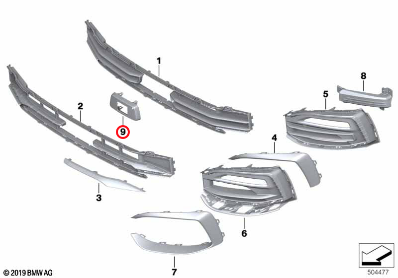 This genuine BMW MRR radar cover (51118496371) is compatible with BMW models equipped with Active Cruise Control with Stop & Go function (S5DFA). It is used as part of the front radar system and covers the MRR (Mid-Range Radar) unit shown in the diagram. This cover is intended for vehicles fitted with the relevant driver assistance system and is suitable as a direct replacement for the original radar cover on applicable vehicles.