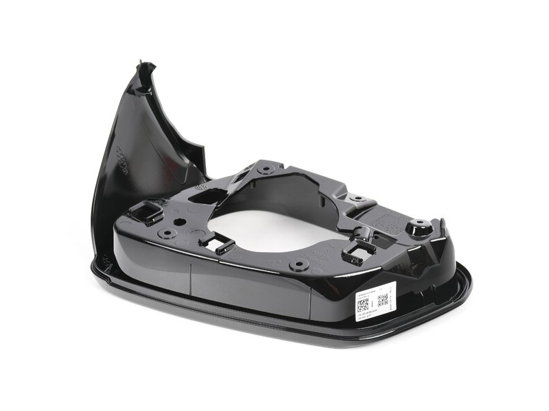 This genuine BMW exterior mirror support frame (51169879144) is compatible with the BMW 1 Series F40 (2019–2024) and BMW 2 Series Gran Coupé F44 (2019–2024). Designed for the right-hand side, it forms part of the exterior mirror assembly shown in the diagram. This version is finished in Bright Black as part of the BMW Shadowline exterior trim, giving it a high-gloss appearance. It is not suitable for M Sport models. As a genuine BMW part, it provides the correct supporting section used on these vehicles and serves as a direct replacement for the original mirror frame component.
